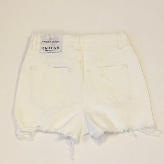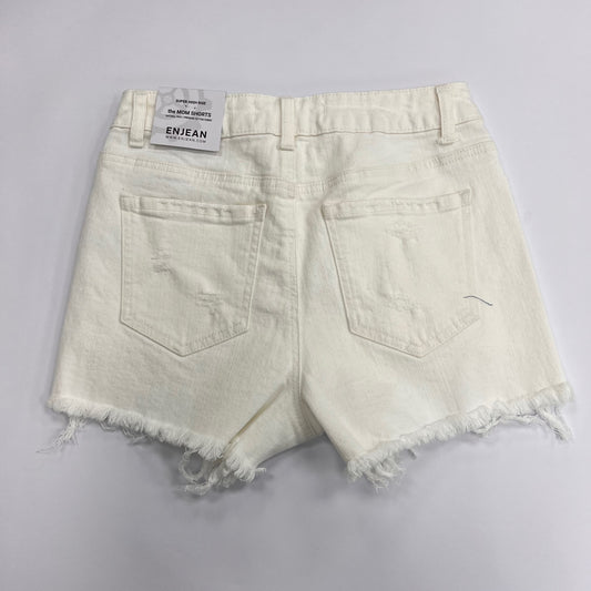 Super High Rise Destructed Mom Shorts - White