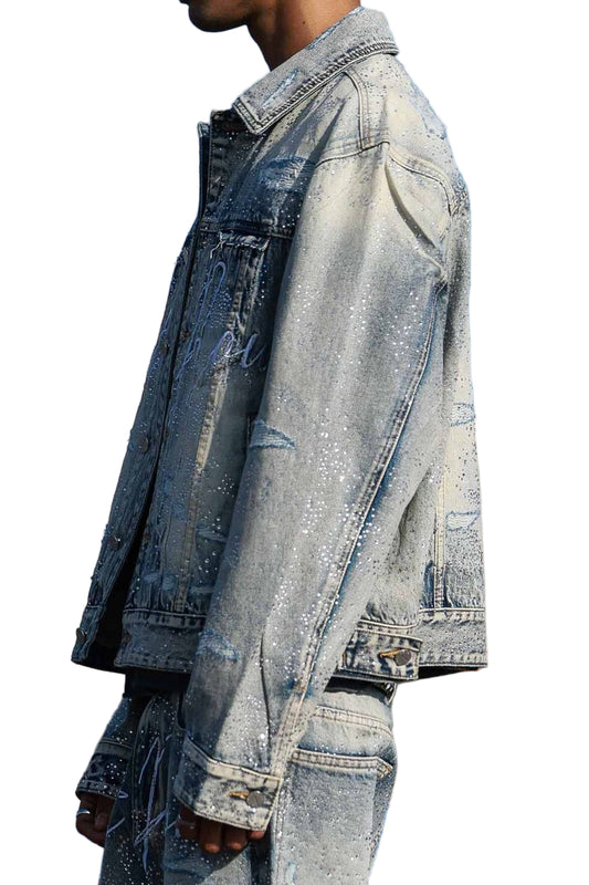 FIRST ROW Allover Rhine Stone Denim Trucker Jacket