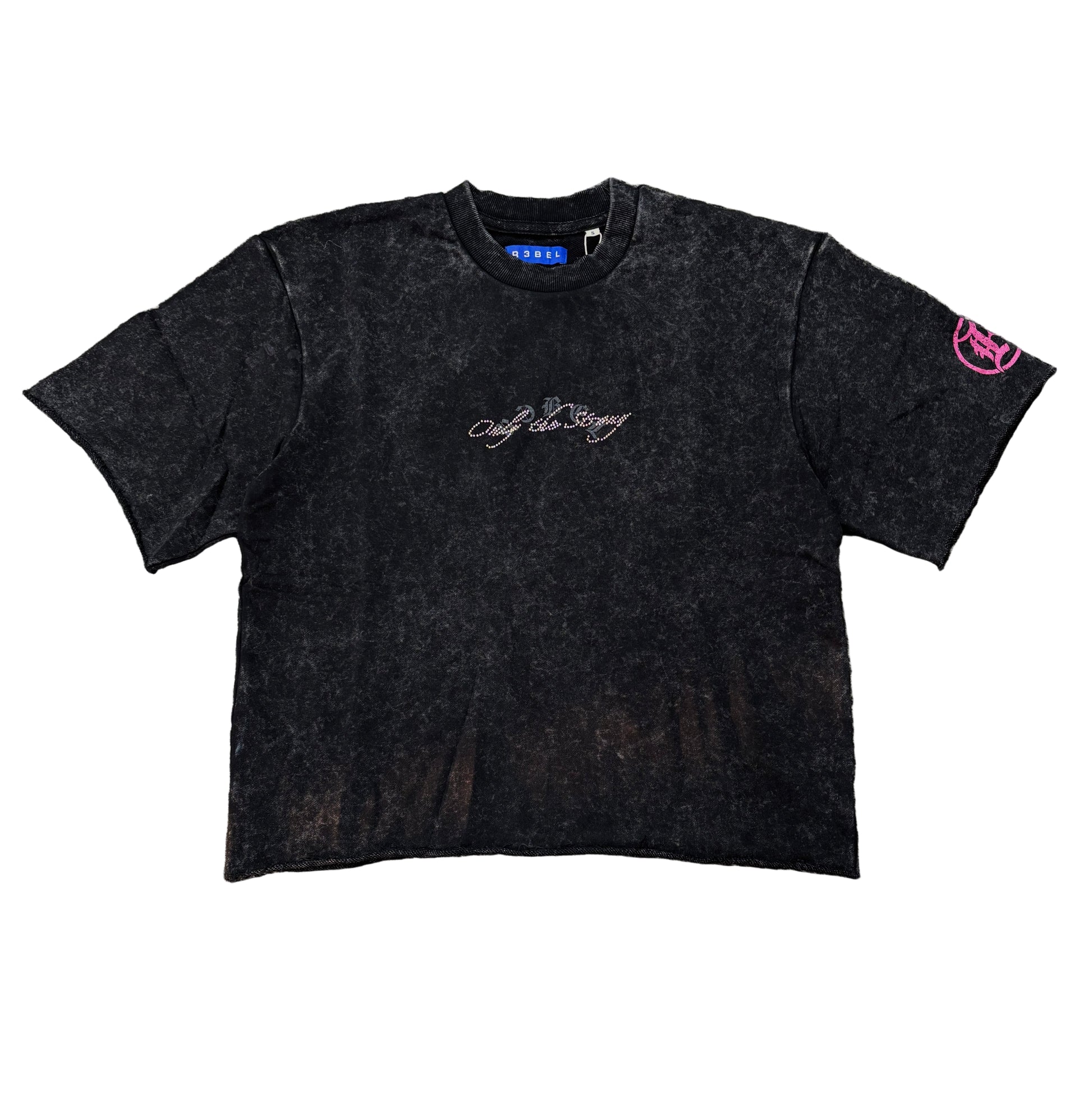 R3BEL Rhinestone Crop Paid Shirt