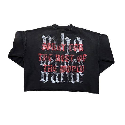 RARE PEACE Mad World Crop Crew Fleece